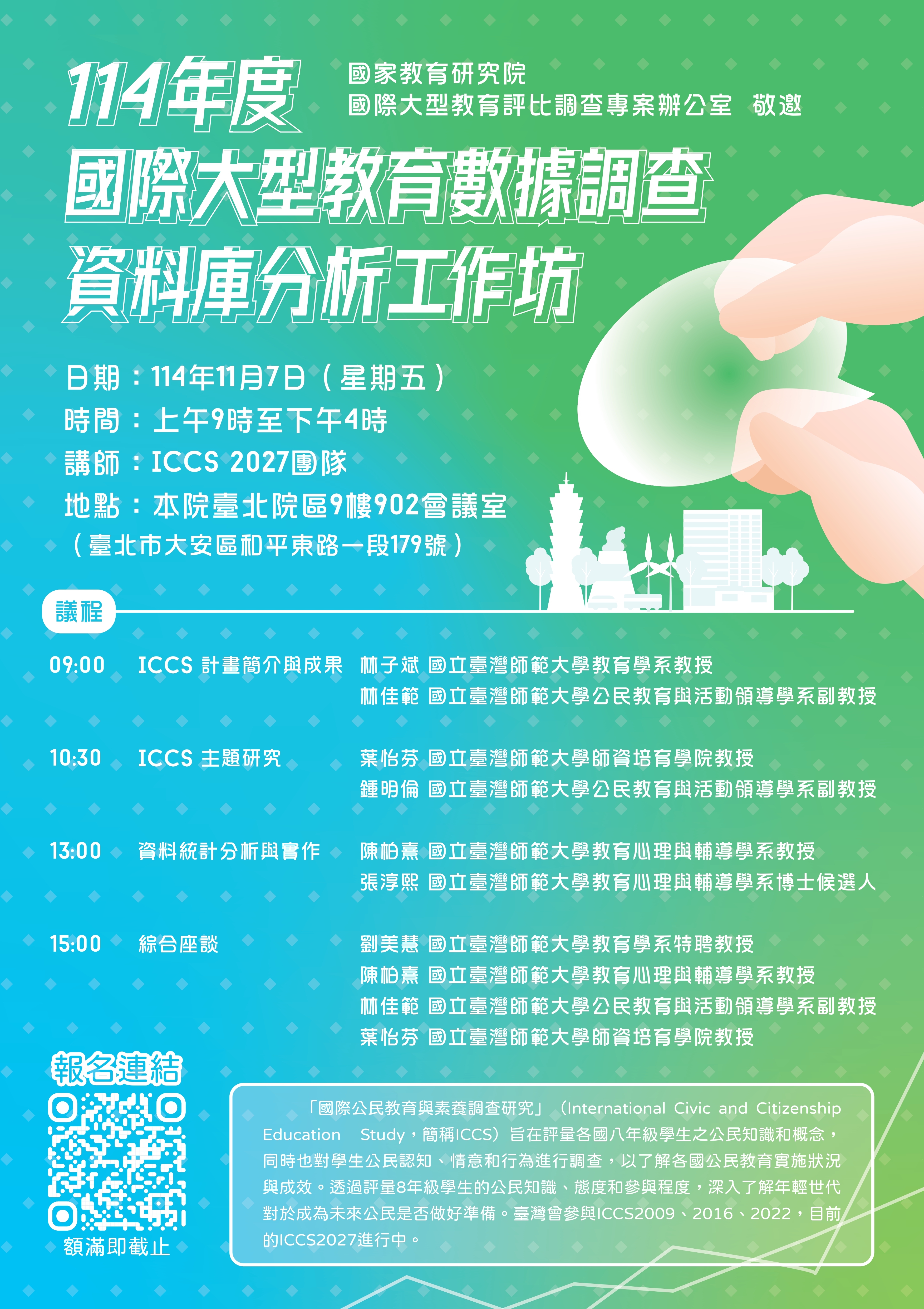 【轉知】國家教育研究院 舉辦「114年度國際大型教育數據調查資料庫分析工作坊」