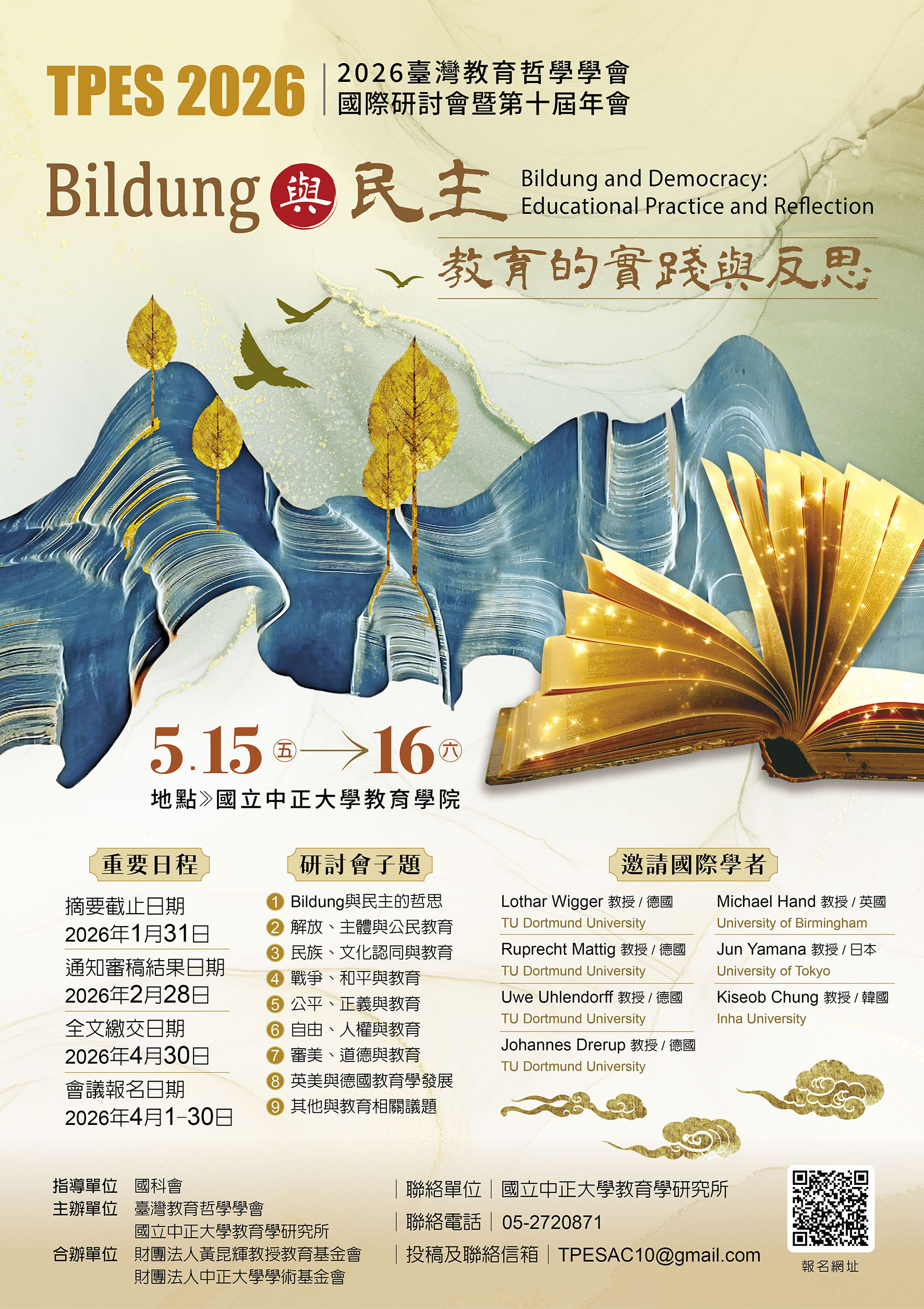 【轉知】【徵稿訊息】國立中正大學教育學研究所「Bildung與民主:教育的實踐與反思」國際研討會暨「臺灣教育哲學學會第十屆年會」徵稿訊息